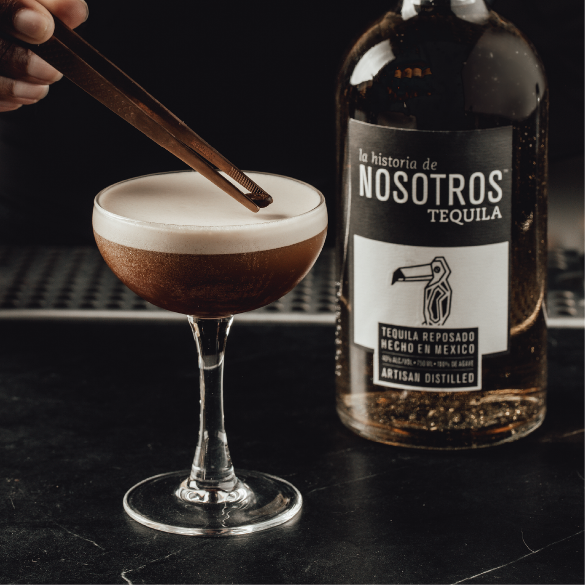- In a shaker, add the Nosotros Reposado, the espresso, the KahlĂșa, the agave nectar, and ice.