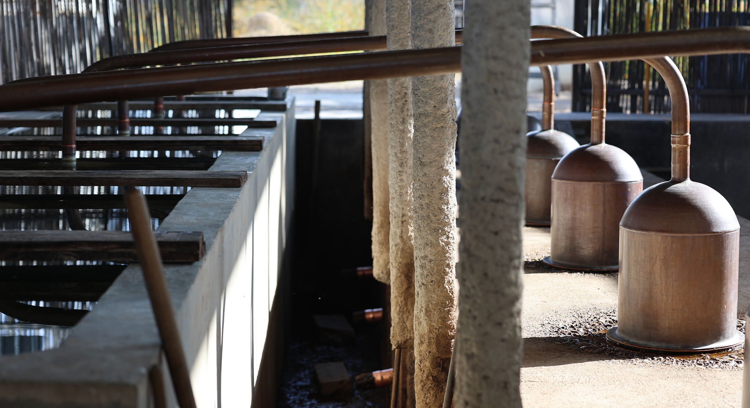 Post-fermentation, the alcohol juice is taken to distillation. Nosotros Mezcal uses alembic (copper still) distillation. It is distilled two times.
